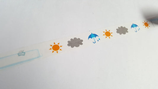 1 x 10m Roll Adhesive Craft Washi Tape - 15mm - Weather Record