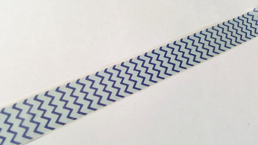 1 x 10m Roll Adhesive Craft Washi Tape - 15mm - Cool Blue Chevron