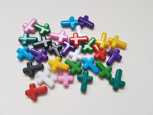 * 30 x Acrylic Beads - 16mm - Cross - Mixed Colour *