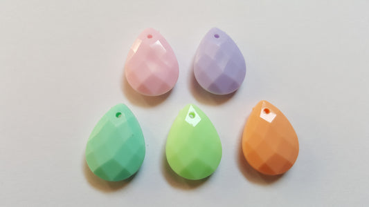 5 x Acrylic Pendants - Faceted Drop - 25mm - Pastels - Mixed Colour