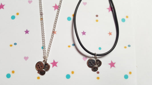 Button Cluster Necklace - Silver Plated Chain