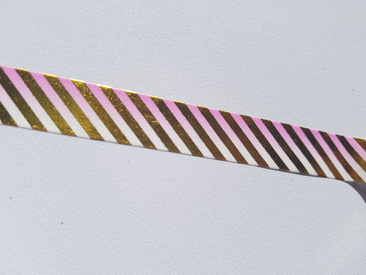 1 x 10m Roll Adhesive Craft Washi Tape - 15mm - Metallic - Stripes - Pink & Gold