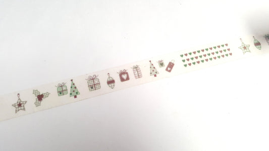 1 x 10m Roll Adhesive Craft Washi Tape - 15mm - Patchwork Christmas
