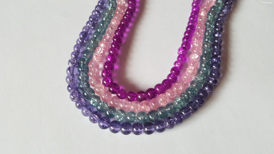* 100 x Crackle Glass Beads - Round - 4mm - Pink *