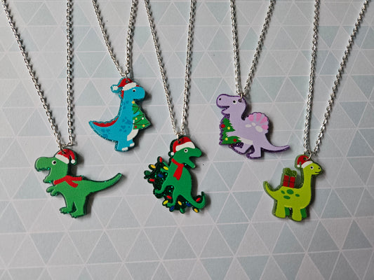 * Christmas Dinosaur Necklace - Purple *