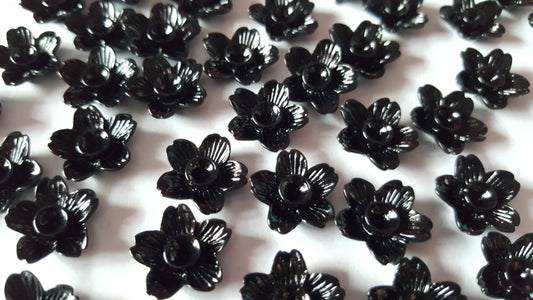 10 x Flatback Resin Cabochons - 15mm - Flower - Black