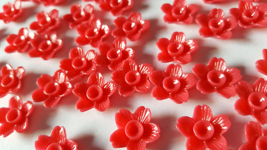 10 x Flatback Resin Cabochons - 15mm - Flower - Red