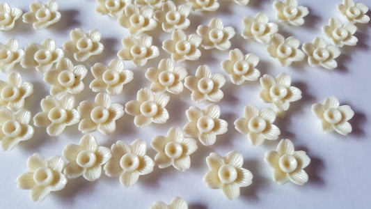 10 x Acrylic Pearl Flatbacks - Flower - 17mm - Cream