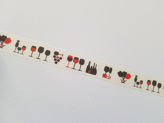 1 x 10m Roll Adhesive Craft Washi Tape - 15mm - Wine Glasses