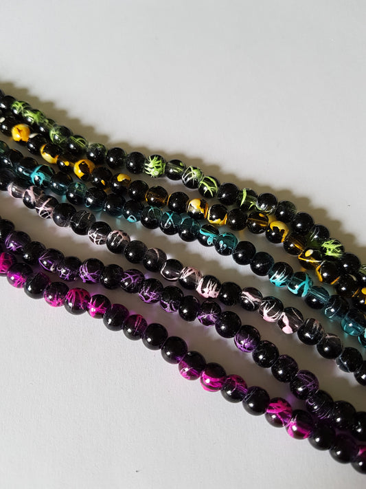 50 x Painted Baked Glass Beads - 6mm - Round - Black