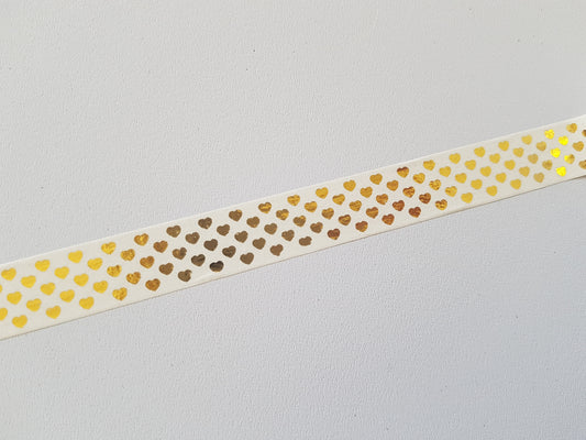 1 x 10m Roll Adhesive Craft Washi Tape - 15mm - Gold Metallic Hearts