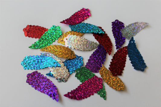 * 20 x Holographic Sequins - 47mm - Leaf - Mixed Colour *