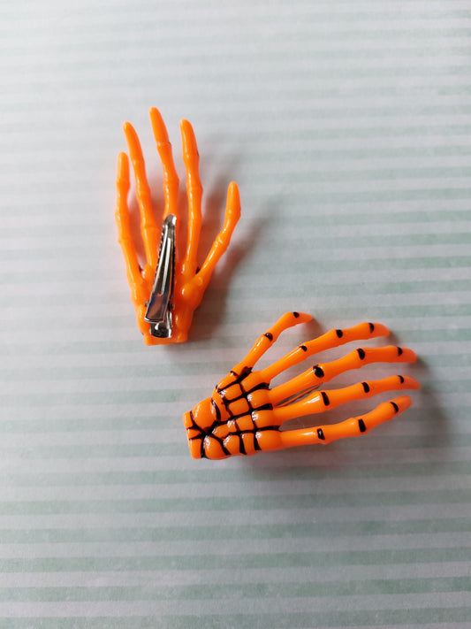 Skeleton Hand Hair Clips - Orange (Set Of 2)