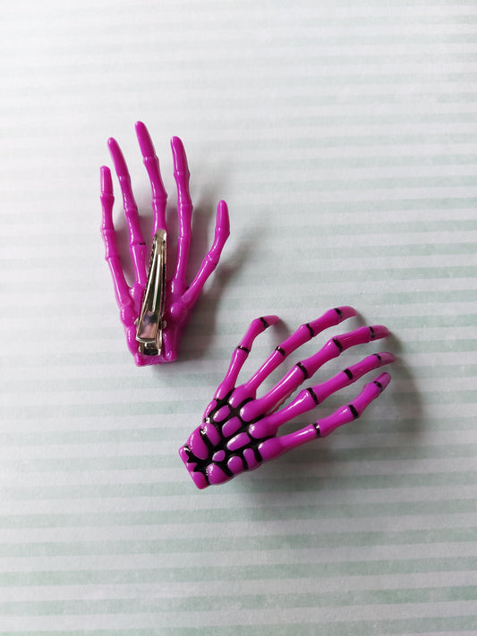 Skeleton Hand Hair Clips - Purple (Set Of 2)