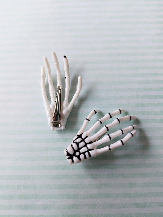 Skeleton Hand Hair Clips - White (Set Of 2)