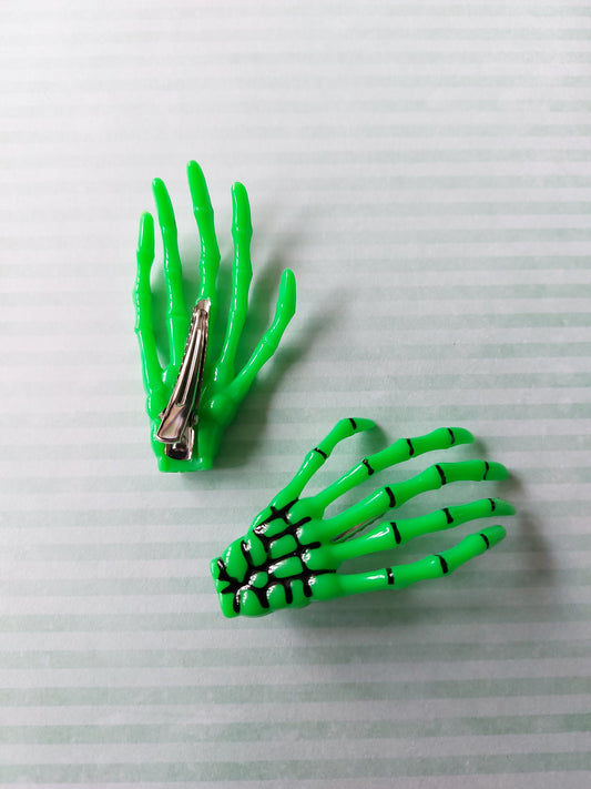 Skeleton Hand Hair Clips - Green (Set Of 2)