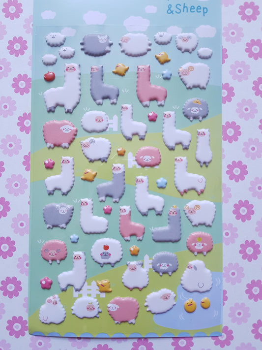 * Puffy Alpaca & Sheep Sticker Sheet *