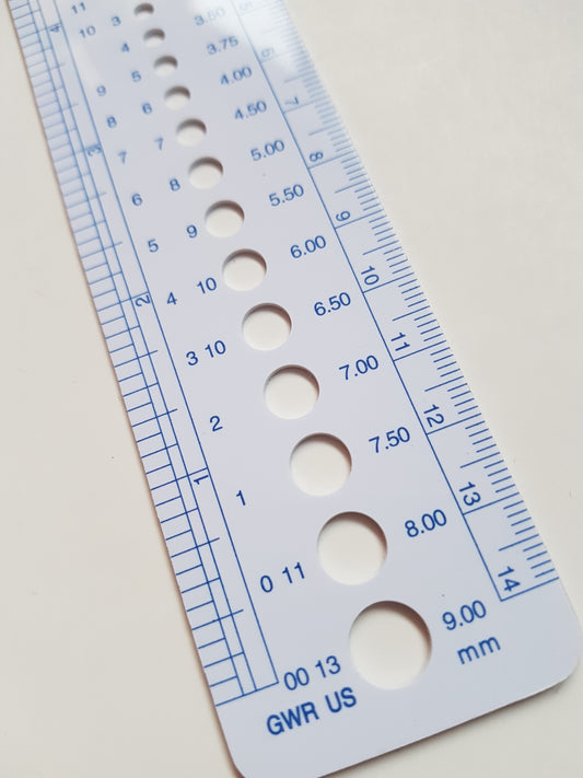 1 x Plastic Knitting Needle Size Gauge Ruler - Inches/CM