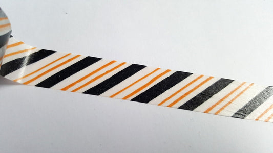 1 x 5m Roll Adhesive Craft Washi Tape - 15mm - Stripes - Black/Orange