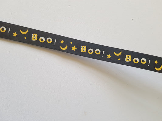 1 x 1m Roll Satin Ribbon Tape - 15mm - Halloween - Boo!