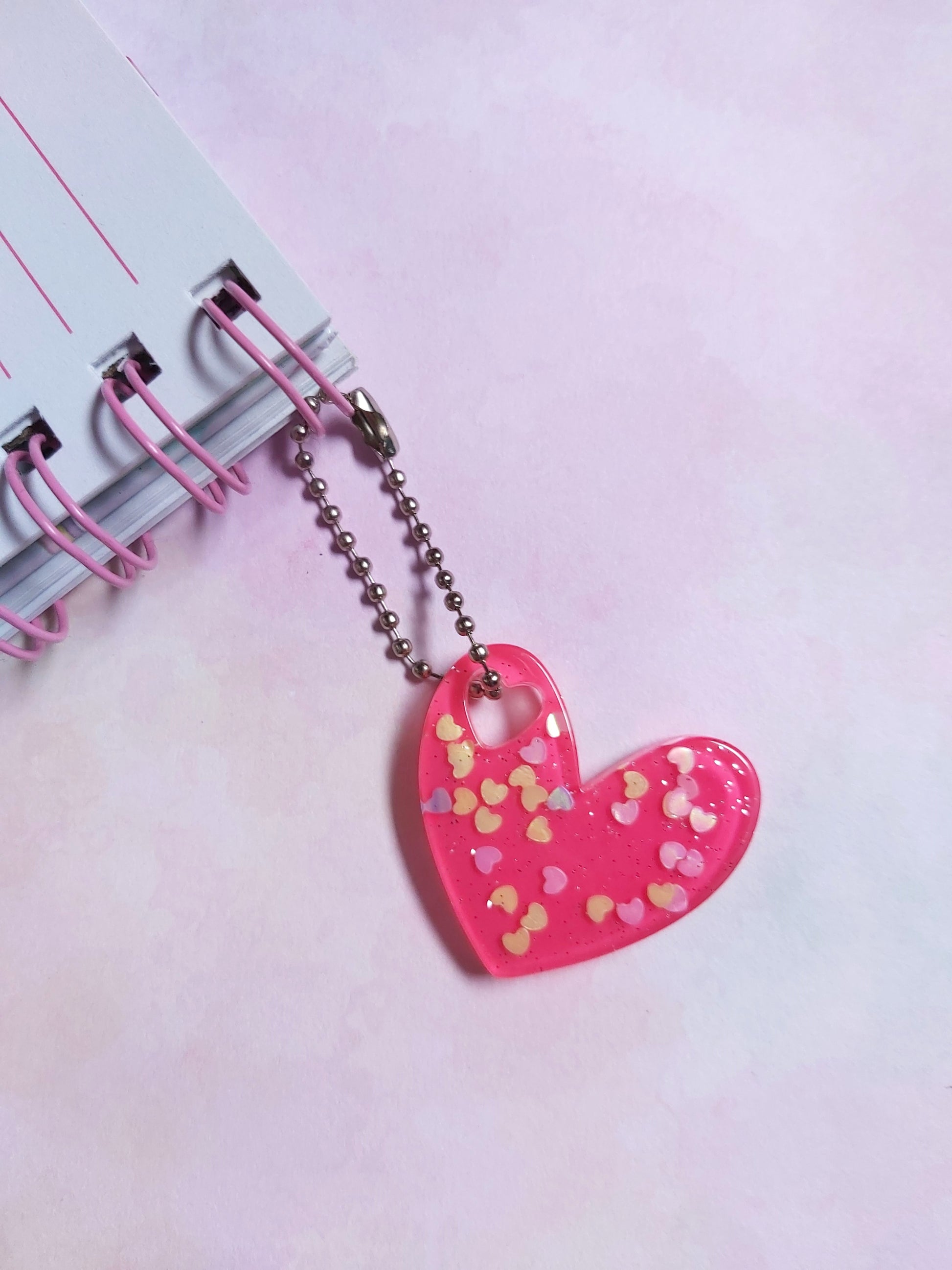 * made using a glitter resin pendant hung from a silver tone ball chain loop